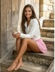 Its cropped cut beautifully highlights the silhouette, while the hood and front zip add a sporty yet distinctly feminine touch.