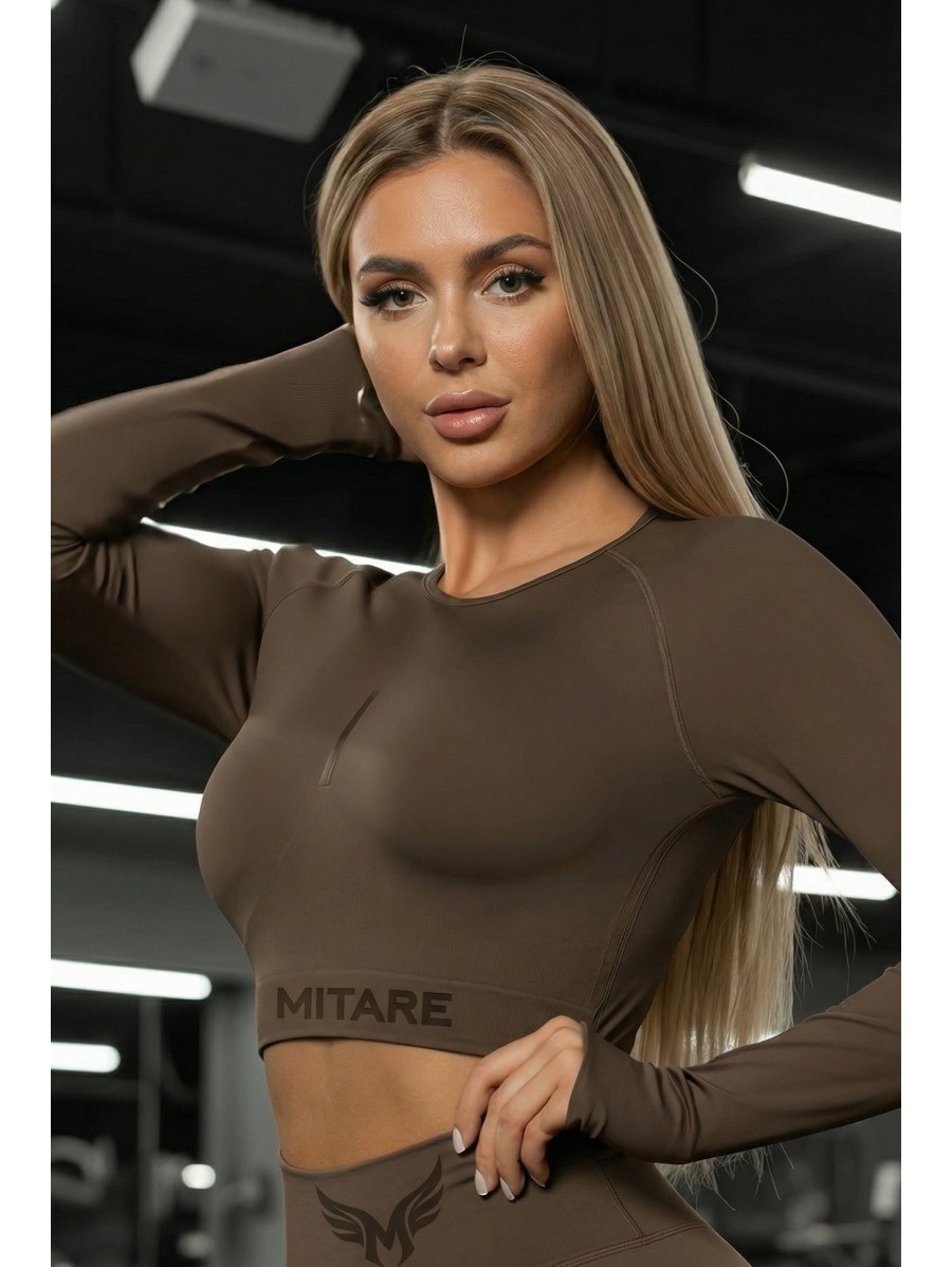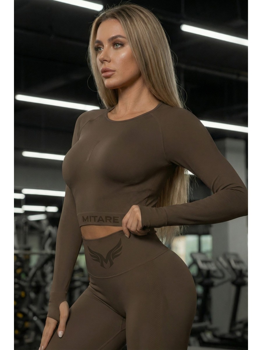 This brown crop top combines comfort, functionality, and feminine style.