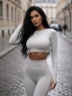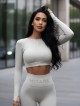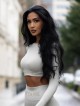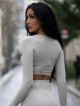 Design crop top with long sleeves is again a brand new piece! This sexy top will make all the daring women who are not afraid of extravaganza and new trends happy.