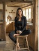 The top, leggings, and jacket together create a modern, feminine look that blends comfort and elegance in one.